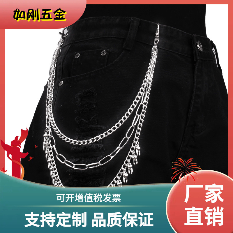 أوروبا والولايات المتحدة المجوهرات عبر الحدود فاسق الرجعية متعددة الطبقات الأسنان قلادة السراويل سلسلة الإضافية الرياح سلسلة الخصر المعدنية بالجملة