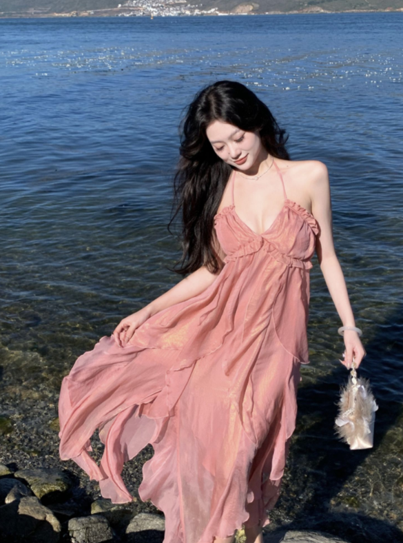 فستان فرنسي مفتوح -فستان مع حزام معلق