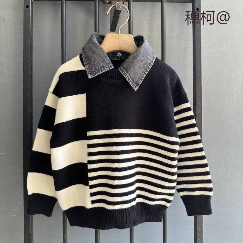 ملابس الأطفال وهمية قطعتين الدنيم طوق البلوز سترة العصرية 2023 الخريف والشتاء الملابس سميكة سترة سترة تدفئة