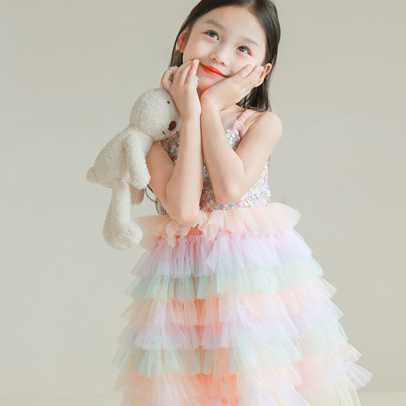 فستان بناتي مزين بالترتر وقوس قزح زلة 2024 صيفي جديد Styline فضفاض ومريح للفتيات Styline فستان غزل الأميرة عصري