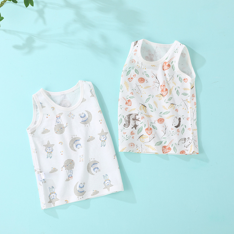 سترة أطفال صيفية رقيقة فئة أ من القطن الخالص بدون عظم خياطة سترة للأطفال ملابس داخلية بدون أكمام حبال للبنين والبنات