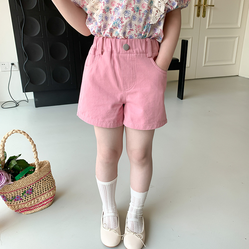 2023 الصيف الكورية نمط الأطفال السراويل الفتيات الطفل السراويل الساخنة زر واحد عارضة كل مباراة بلون السراويل