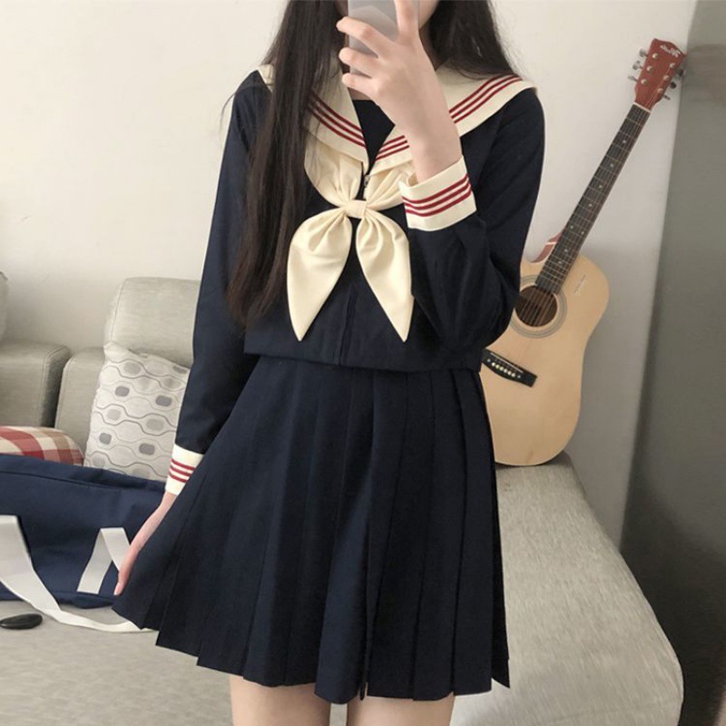 بدلة Jk جيدة JK موحدة بدلة بحار سماوي بدلة أساسية متوسطة المرأة اليابانية الخريف والشتاء زي مدرسي عبر الحدود