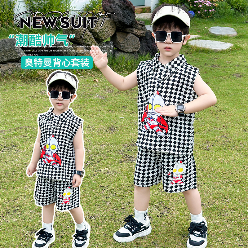 الترامان رقيقة منقوشة بلا أكمام الصبي فستان صيفي دعوى روفيان وسيم جديد للأطفال سترة النمط الغربي قميص بولو الطفل