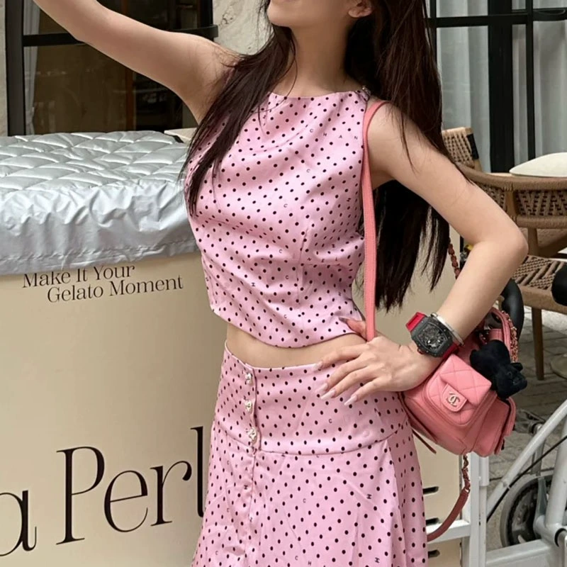 100 ٪ حرير التوت ~ حلو عطلة نمط ~ سلسلة موجة النقطة القميص شورتات شورت نصف تنورة مجموعة 24