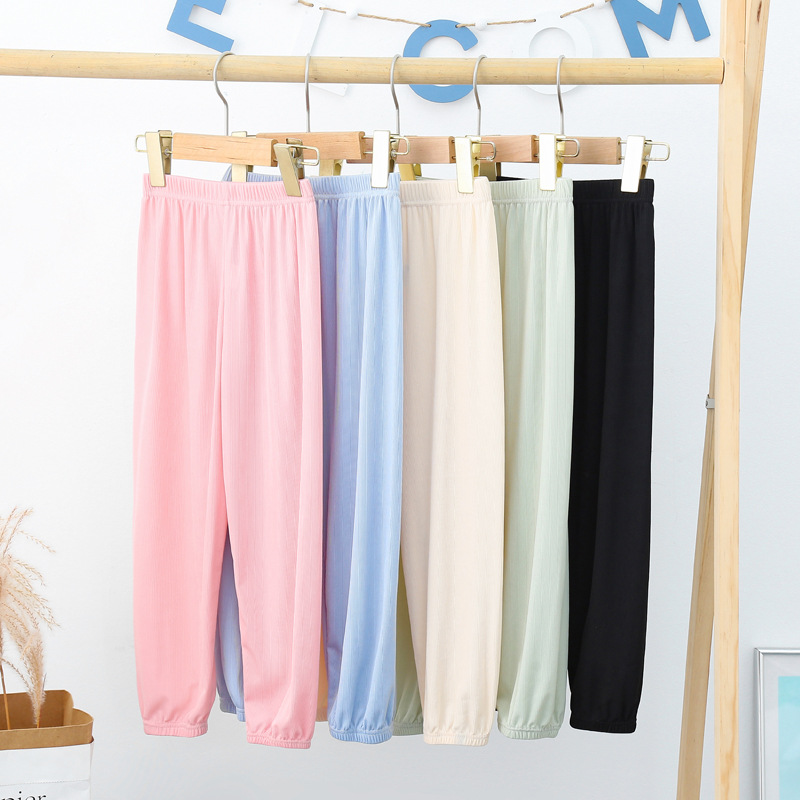 الأطفال الحرير الجليد مكافحة البعوض السراويل الصيف الفتيان والفتيات المنزل رقيقة فانوس الطفل الربيع والصيف فضفاض لباس خارجي بنطلون بيجاما