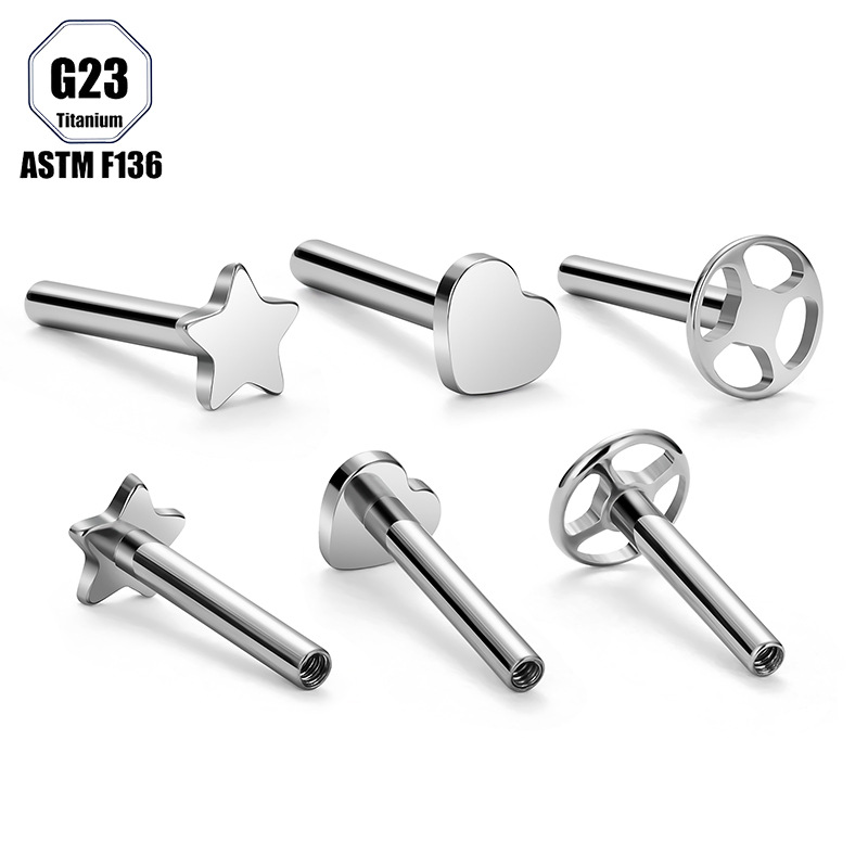 G23 سبائك التيتانيوم شخصية الحب نجمة خماسية قاعدة مطلية بالذهب خيط داخلي مجوهرات اكسسوارات القرط القطب
