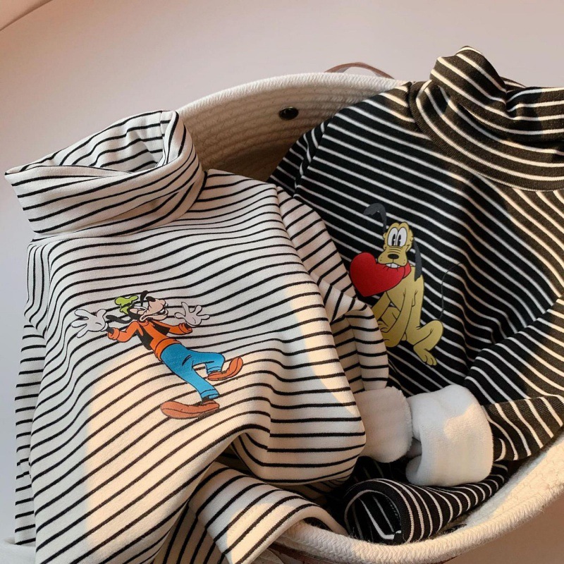 الأطفال قاعدة قميص الرجال القطن الخريف والشتاء ذوي الياقات العالية الأطفال الدافئة أعلى الصوف مبطنة الطفل تي شيرت طويل الأكمام المرأة النمط الغربي