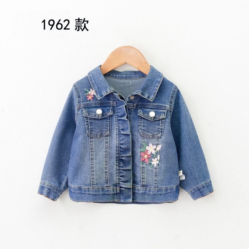 سترة دنيم للفتيات للخريف سترة عصرية على الطراز الكوري جديدة ملابس أطفال مطرزة من الدنيم للفتيات الصغيرات