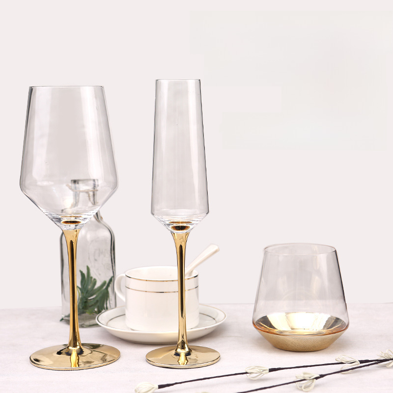 الإبداعية تصفيح قضيب ذهبي كريستال النبيذ الأحمر الزجاج الشمبانيا الزجاج كأس زجاجي ويسكي مع أسفل الذهب مشرق