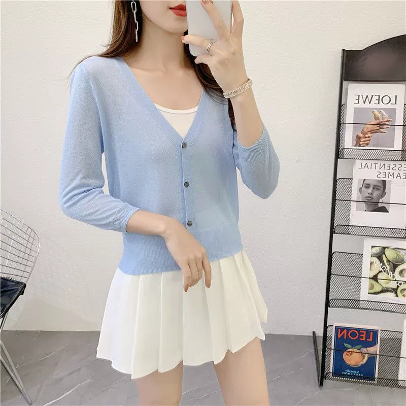 سترة صيفية من الحرير الجليدي مع حمالات وشال للحماية من الشمس