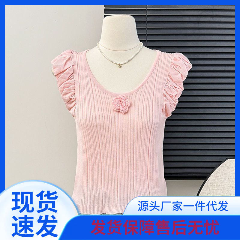 النمط الفرنسي زهرة ثلاثية الأبعاد أنيقة لطيف الصيف صغيرة تحلق كم تصميم حس أنيق محبوك نظرة ضئيلة سترة سليم صالح