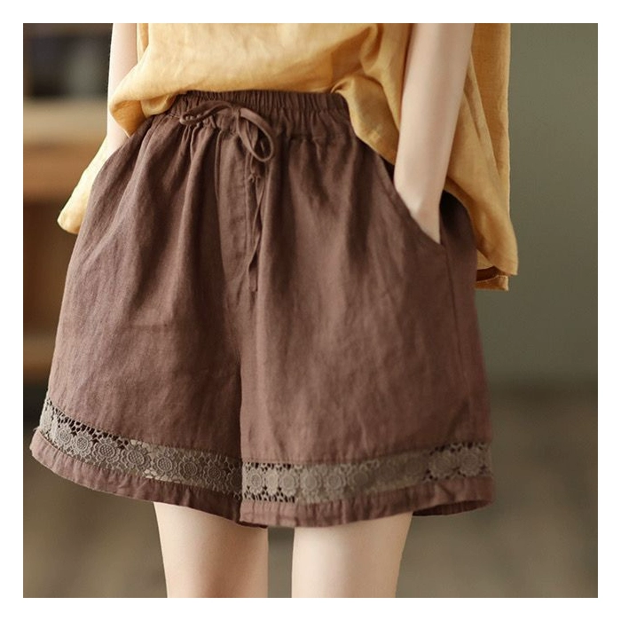 شورتات رقيقة مرنة الخصر جوفاء الدانتيل غير الرسمي