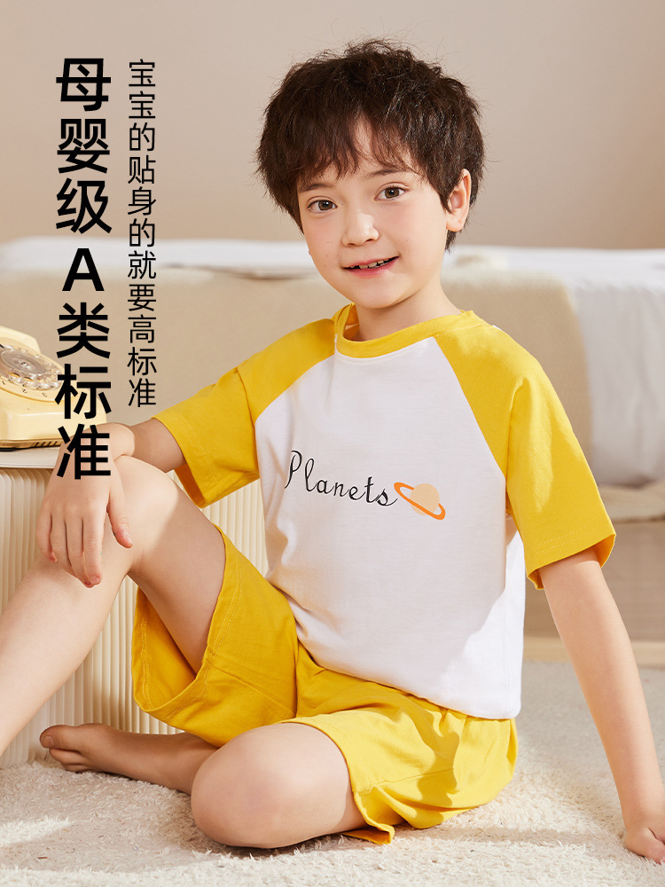 بيجامات للأولاد صيفية رفيعة بأكمام قصيرة من القطن ملابس الأطفال تكييف الهواء 2024 ملابس منزلية جديدة للمراهقين تناسب الموضة