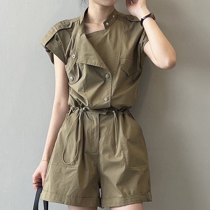 ضيق الخصر الأدوات بذلة السراويل النسائية الصيف تصميم تحسس قميص بذلة صغيرة الحد من العمر عالية الخصر واسعة الساق السراويل