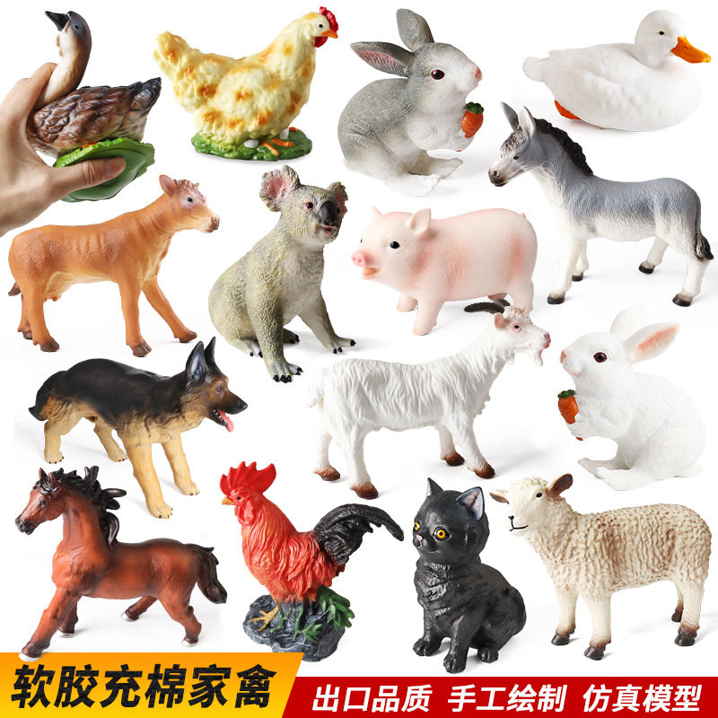 لعبة مجسمة لمحاكاة الدواجن للأطفال عبر الحدود غراء ناعم مملوء بالقطن أرنب دجاج بطة أوزة ماعز حمار ميانيانغ كلب ماشية كوالا