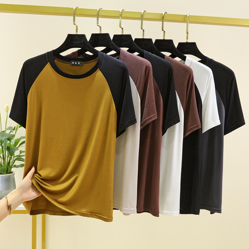 تي شيرت نسائي صيفي من القطن مشروط متعدد الاستخدامات بأكمام قصيرة ورقبة دائرية فضفاضة وخياطة رفيعة نصف كم قميص علوي