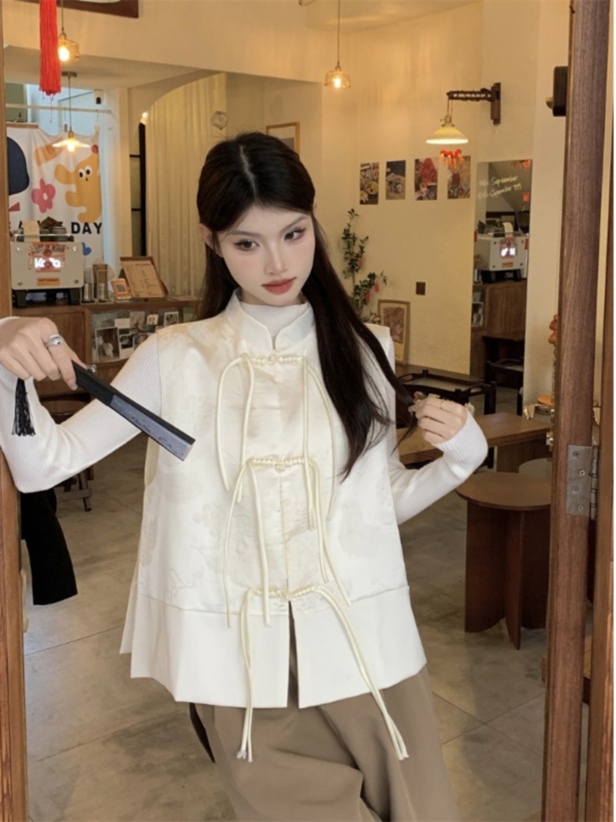 جديد النمط الصيني النمط الوطني Vintage مشبك سترة المرأة ربيع 2024 موضة جديدة النمط الغربي كل مباراة فضفاضة طوق سترة