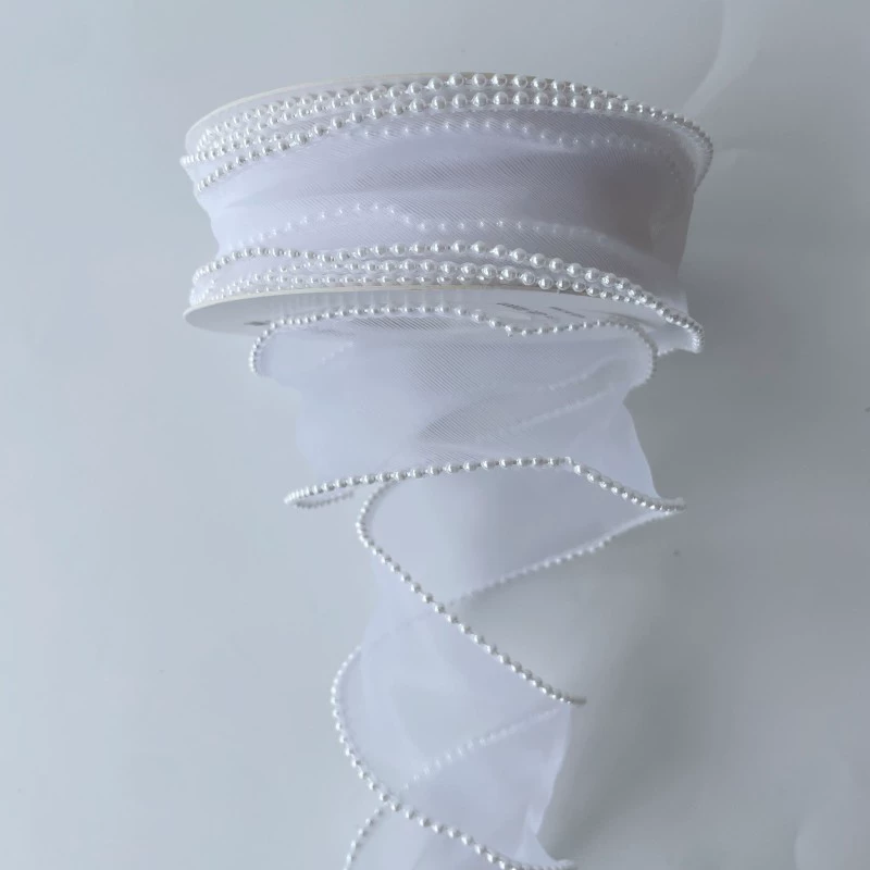 لؤلؤة حافة ذيل السمكة شاش التعبئة والتغليف حرير الشريط هدية كعكة الديكور الشريط المصنوع يدويا القوس القوس