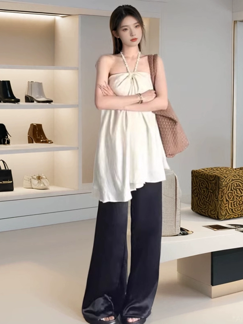 قميص قصير مثير بحمالة عنق بنمط حلو وحار للنساء مع تصميم غير منتظم للصيف، قميص فضفاض بدون أكمام للارتداء الخارجي