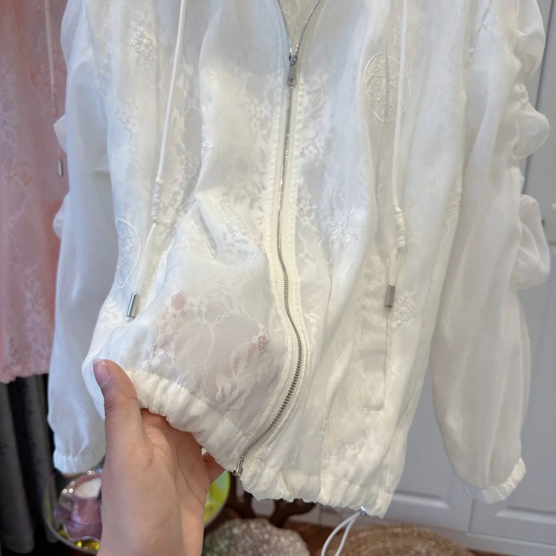 واقية من الشمس سترة مشغولة من الصوف المرأة الربيع والصيف 2024 رقيقة لباس خارجي رغبة نقية بلوزة الملمس كم طويل شال المرأة