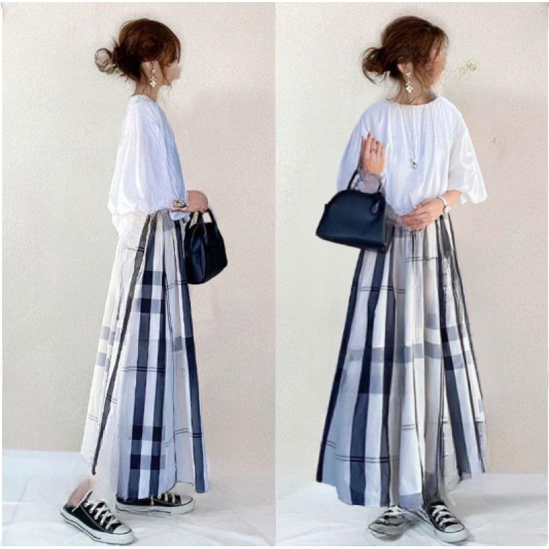 التجارة الخارجية عبر الحدود الملابس النسائية اليابانية الصيف الجديدة كوريا الجنوبية جولة الرقبة قصيرة الأكمام أعلى تنورة قطعتين مجموعة