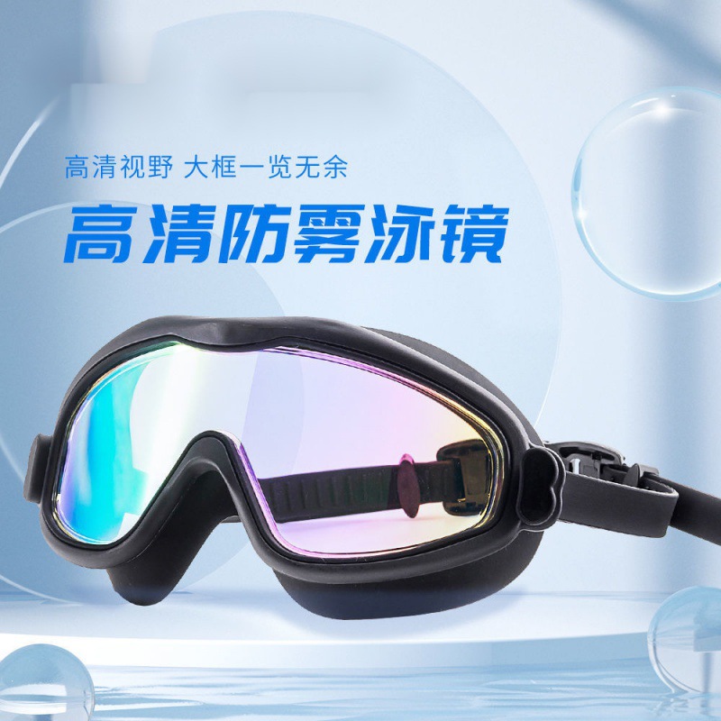 نظارات السباحة للكبار مضادة للضباب، احترافية للسباحة، مطلية بالكهرباء، خفيفة مسطحة، مقاومة للماء، إطار كبير عالي الدقة للشعر