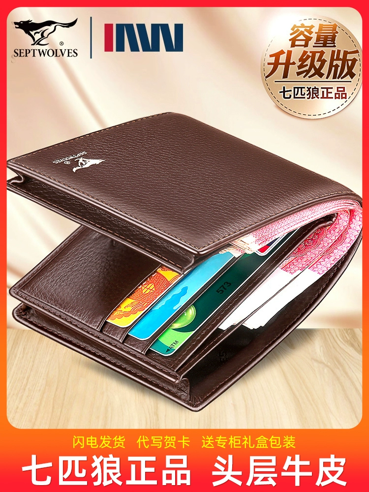 Septwolves محفظة رجالية جلد طبيعي محفظة قصيرة 2024 جديد مشبك جلدي علوي حقيبة جلد البقر حامل بطاقة أبي المتكاملة