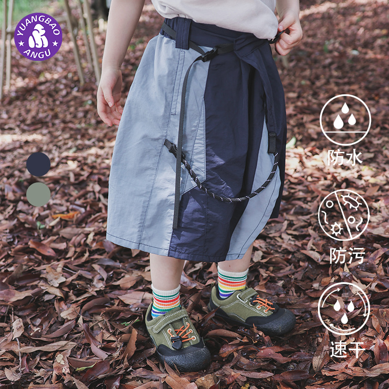 تنورة للفتيات بخياطة متباينة 2024 تنورة صيفية جديدة للتخييم في الجبال والرياح للأطفال تنورة سريعة الجفاف بالجملة
