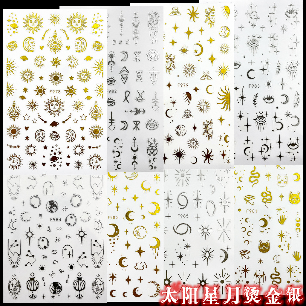 جديد عبر الحدود خاص لملصقات الأظافر البرنز والفضة، ملصقات فنية للأظافر، نجوم إله الشمس، نجوم القمر
