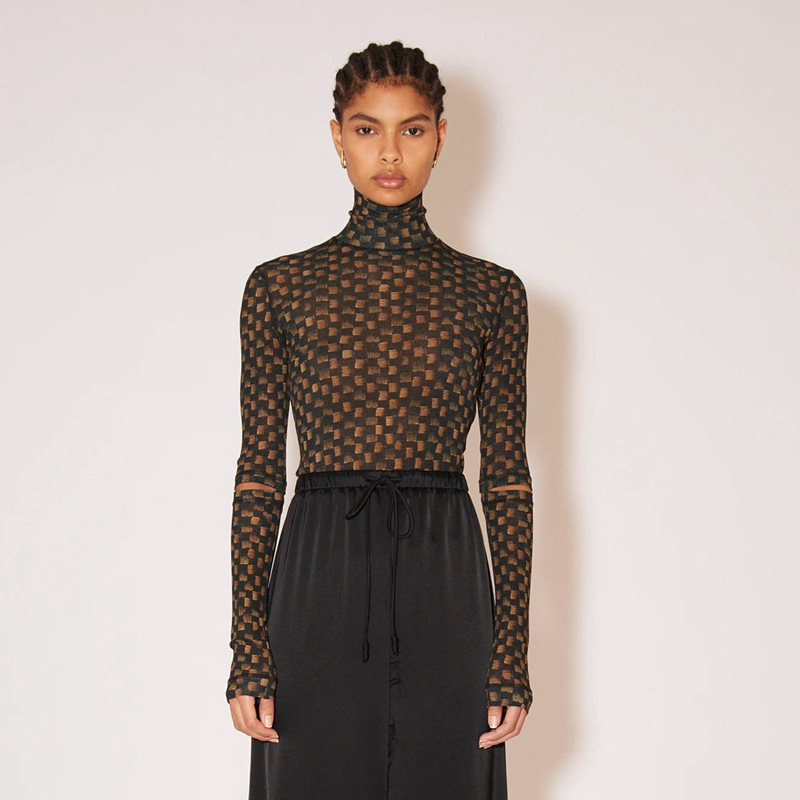 NANU منقوشة قاعدة قميص المرأة الربيع والصيف 2023 تمتد سليم صالح عادية الياقة المدورة