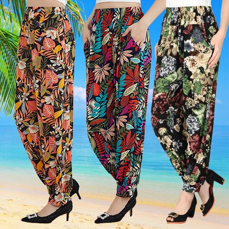 سروال فانوس من الحرير الجليدي المقلد ذو ملمس قلادة للنساء مضاد للبعوض وواقي من الشمس طماق فضفاض عالي الخصر مقاس كبير سروال قصير للتكييف