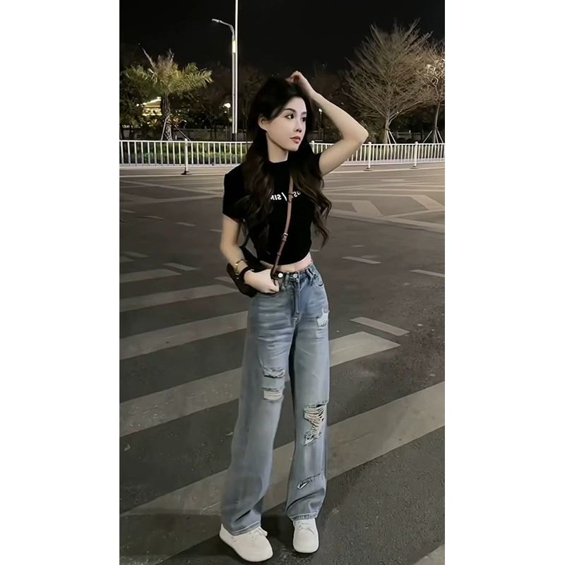 سراويل نسائية غير رسمية ممزقة عالية الخصر للصيف