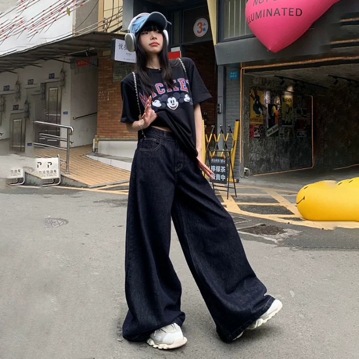 الرجعية الأزرق الأزرق الداكن عالي الخصر اندلاع الجينز الممتد
