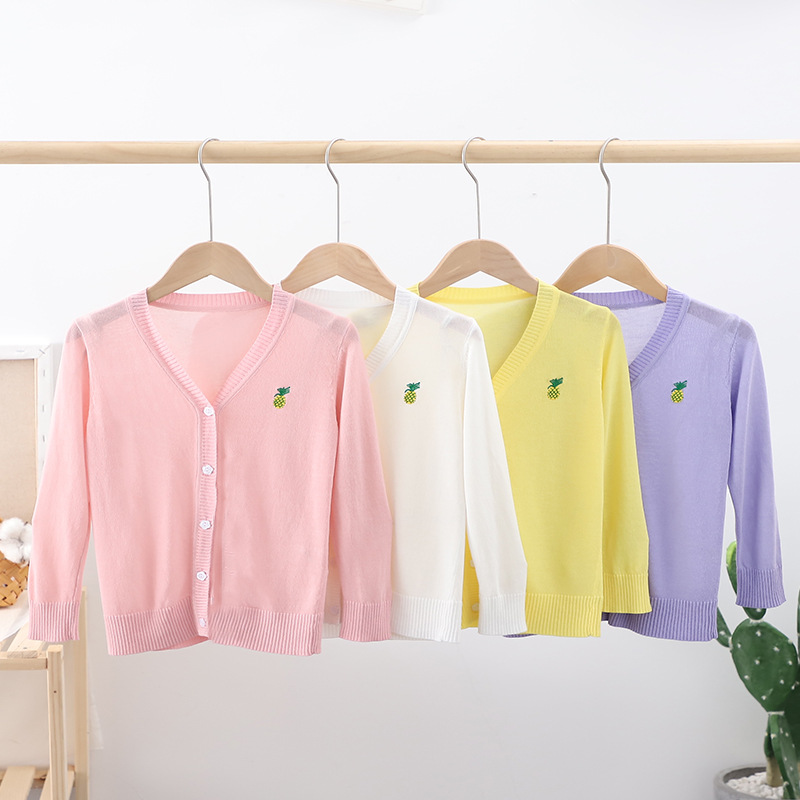 سترة محبوكة من المصنع مباشرة للفتيات من مادة الحرير الجليدي ملابس واقية من الشمس في معطف رقيق بلون سادة للأطفال الكبار جيل من البريد