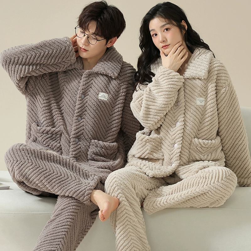 بيجامة زوجين من الفلانيل الدافئة للخريف والشتاء سميكة