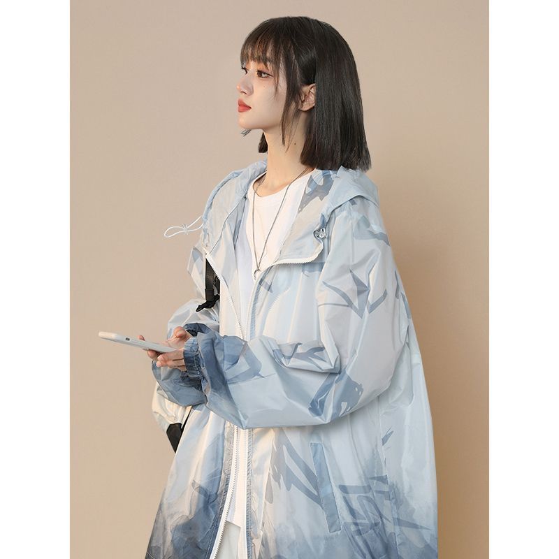 ملابس واقية من الشمس متدرجة للنساء صيفية فضفاضة للحماية من الأشعة فوق البنفسجية معطف رقيق ماركة عصرية على الطراز الأمريكي ملابس واقية من الشمس بقلنسوة