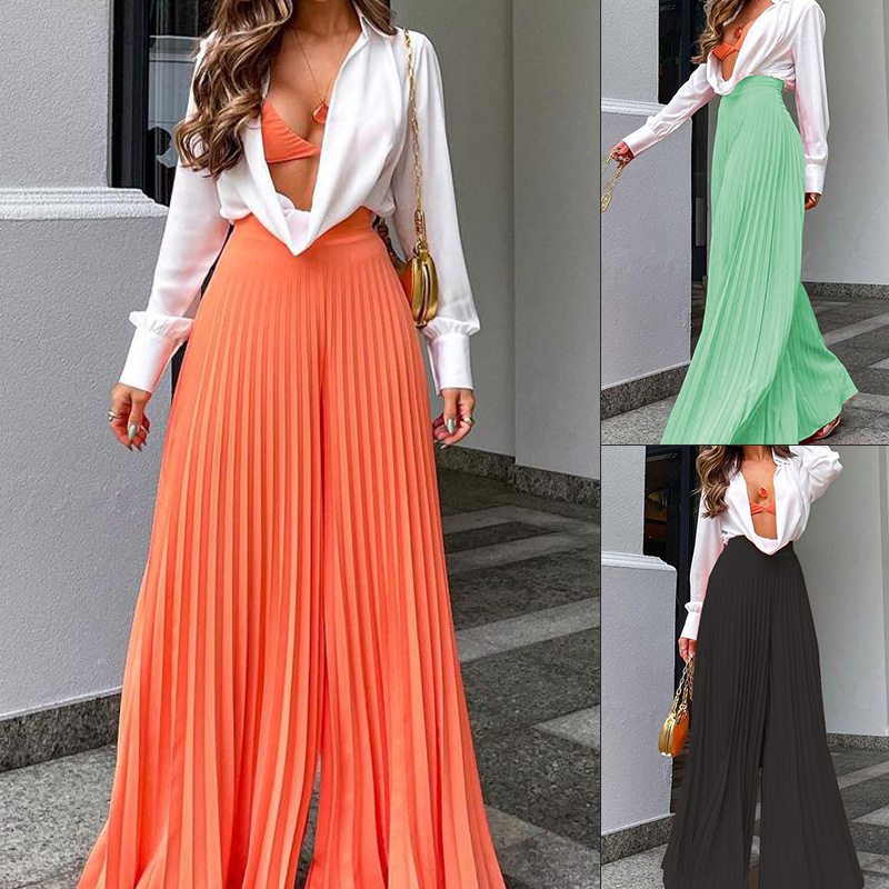 FD1110 متوفر في المخزون لخريف 2022 سراويل نسائية أوروبية وأمريكية جديدة ذات ثنيات طويلة وواسعة الساق عبر الحدود