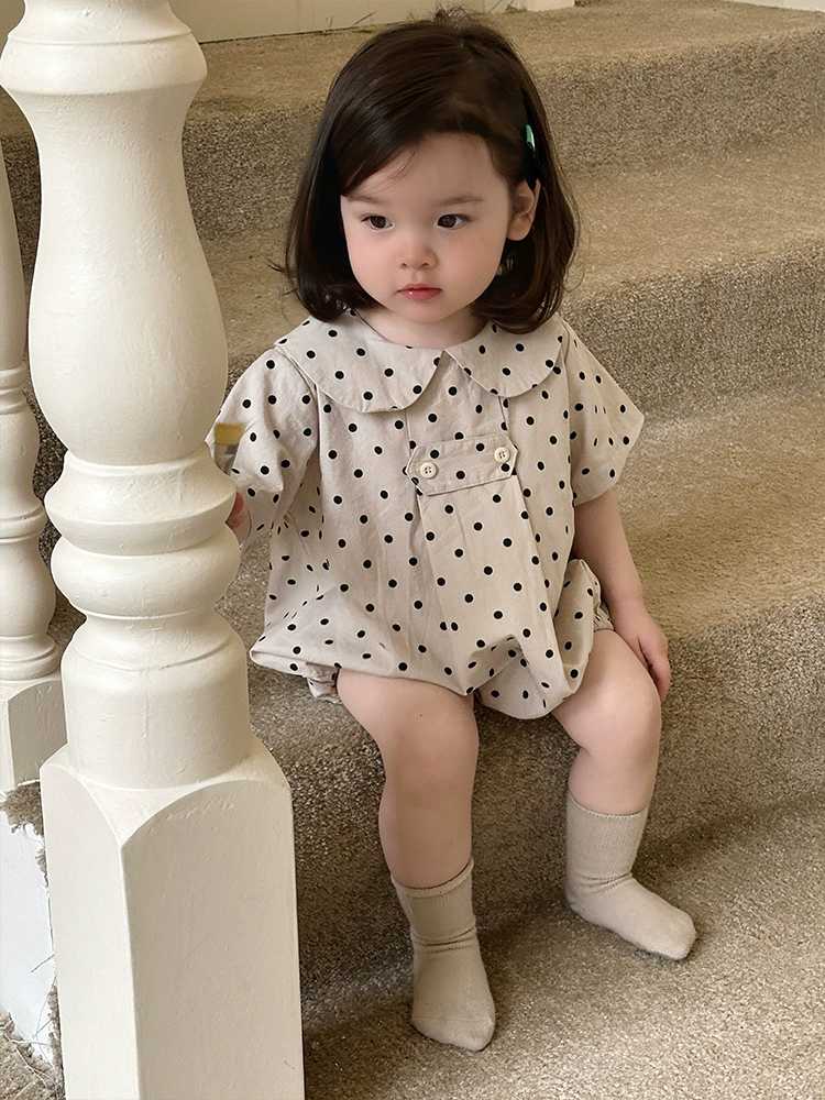 الصيف الكوري طفلة طفلة دمية ذوي الياقات البولكا نقطة قصيرة الأكمام الطفل عصري نقي القطن كيس الطية صدر السترة الطية تزحف الملابس العصرية