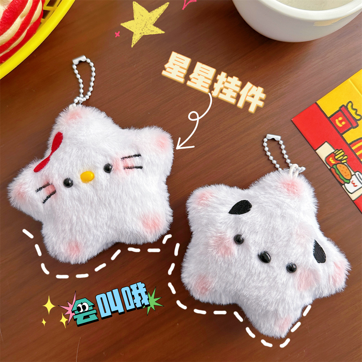 Ins Style Girl لطيف الكرتون ستار القط الصرير خائف الكلب دمية المحمولة مفتاح سلسلة حقيبة الظهر قلادة