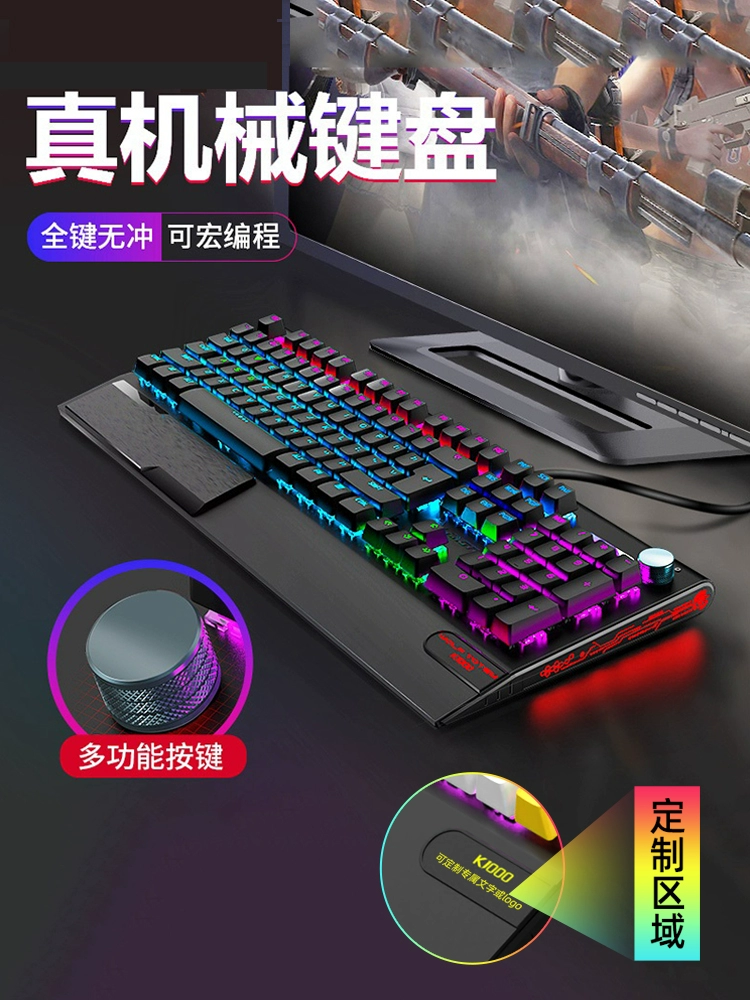 Langtu K1000 لوحة مفاتيح ميكانيكية حقيقية للألعاب 104 مفاتيح أخضر أسود أحمر محور E-Sports مخصص مسند اليد كمبيوتر قابل للتبديل السريع