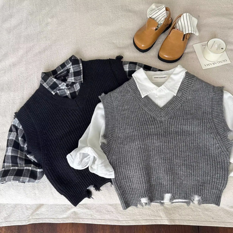 سترة للأطفال موضة خريف 2024 جديدة للأولاد والبنات سترة ممزقة بلون سادة سترة للأطفال تناسب كل مباراة سترة عصرية باللون الأحمر الصافي
