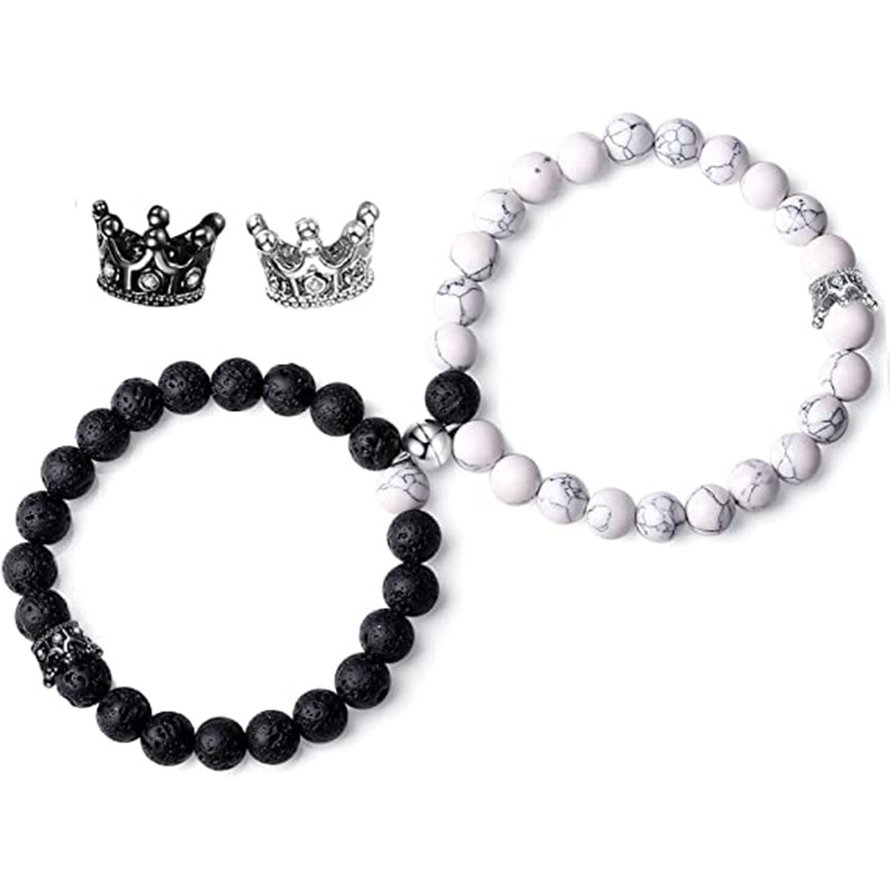 انفجارات الأمازون الأزياء الأوروبية والأمريكية الوردي كريستال متجمد الحجر سوار زوجين المغناطيسي تاج زوجين سوار الخرز