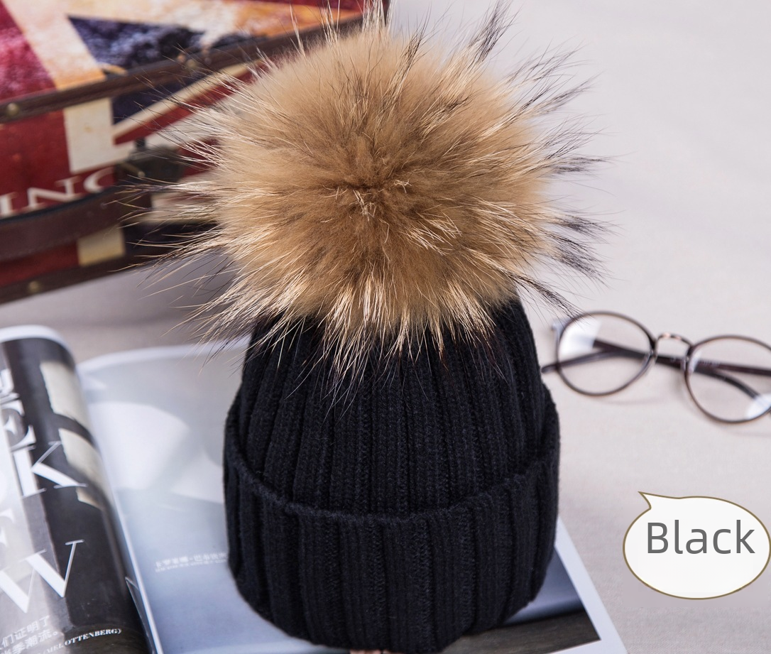 2021 جديد الخريف والشتاء الشباك حماية الأذن محبوك قبعة الكورية الراكون 15 سنتيمتر كرة صوف قبعة صوف