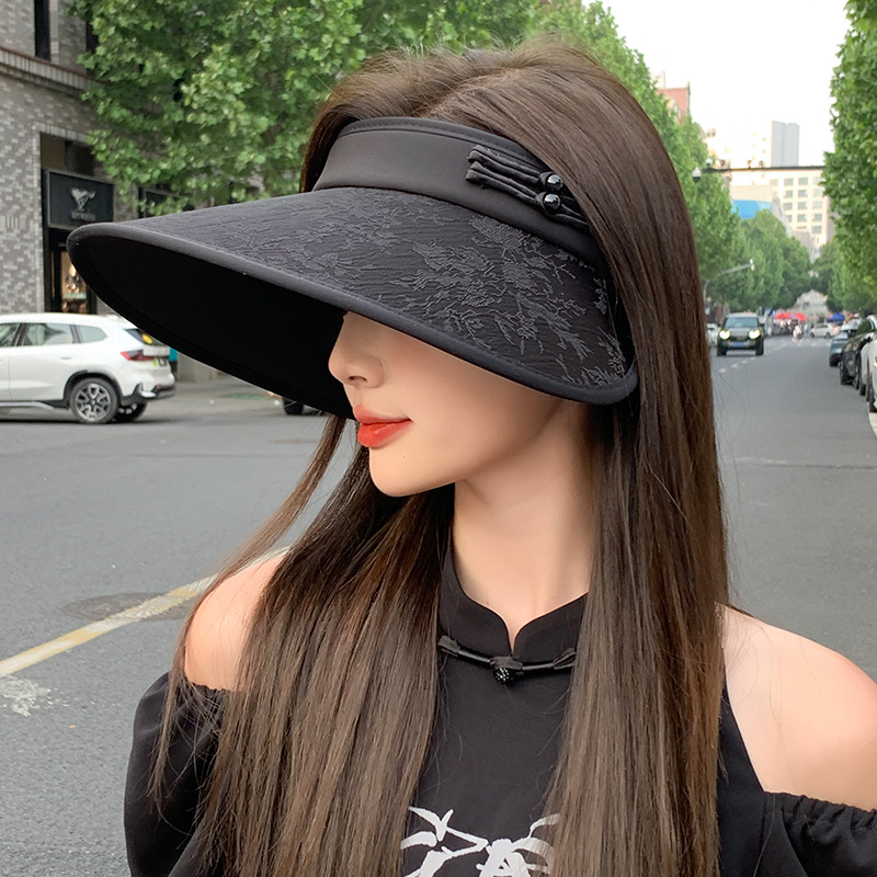 Guofeng قبعة المرأة الصيف المضادة للأشعة فوق البنفسجية المطرزة مشبك وعاء قبعة في الهواء الطلق المنتهية ولايته فارغة ظلة واقية من الشمس قبعة