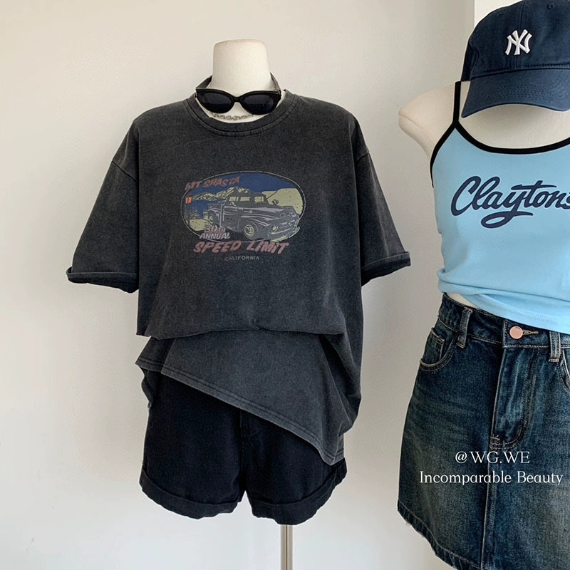 القطن القديم القابل للغسل الأكمام القصيرة ذات الحجم الكبير