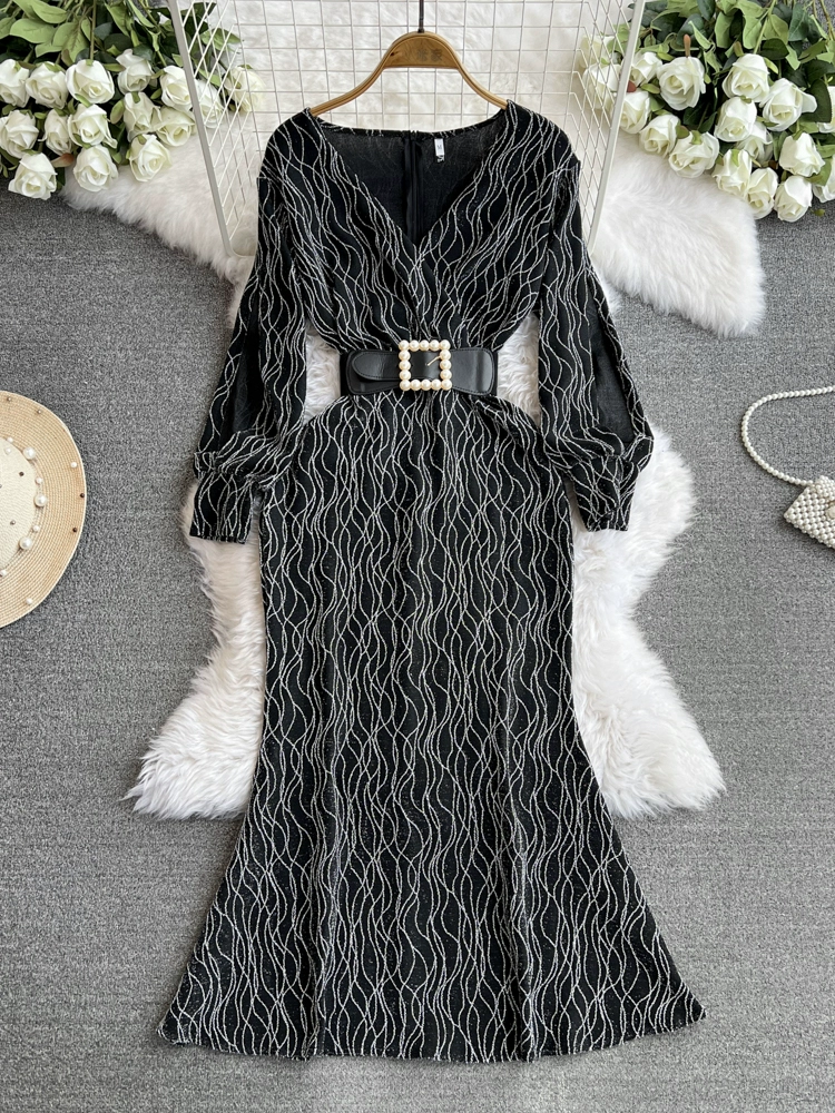 فستان سهرة فاخر خفيف للمشاهير، خصر أنيق برقبة على شكل حرف V، فستان حريري لامع نحيف، تنورة هيبورن فرنسية طويلة