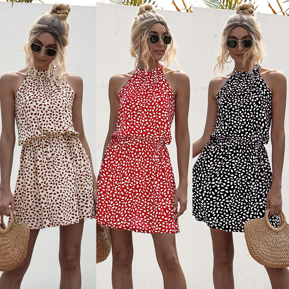 2021eaby Amazon Wish Independent Station الأكثر مبيعًا تنورة فستان مطبوعة على شكل قلب مكشوفة الكتفين وحزام رقبة