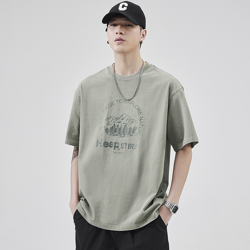 القطن الخالص تي شيرت الرجال الصيف الوزن الثقيل موضة رسالة قصيرة الأكمام أفضل الرجال كل مباراة الصيف لباس خارجي تنفس تي شيرت