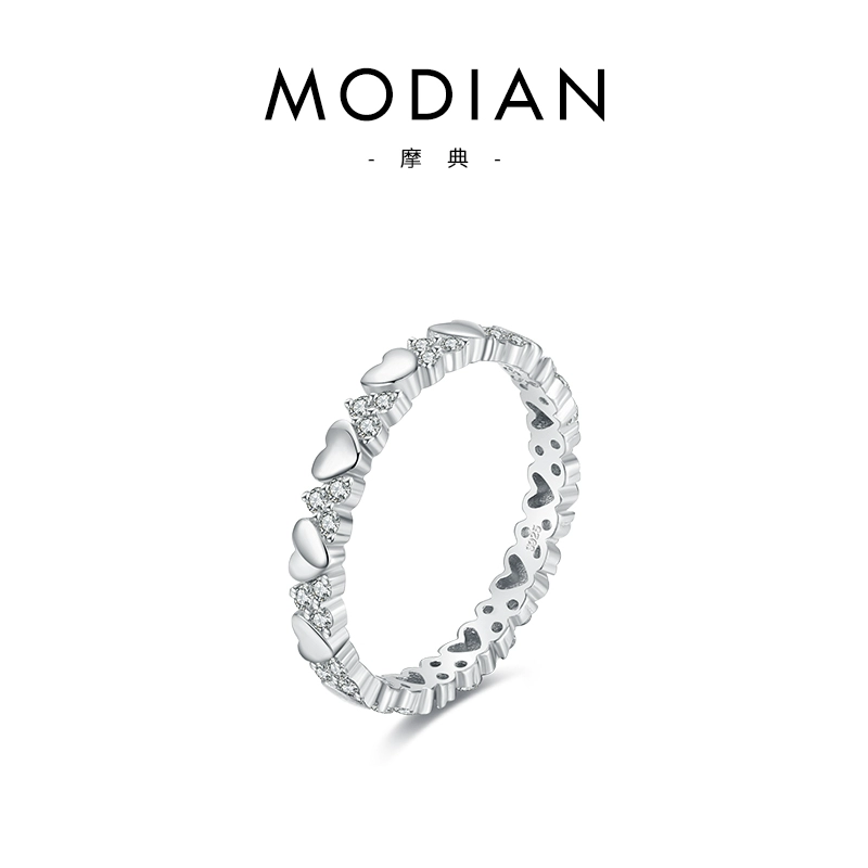 S925 فضة على شكل قلب الحب لطيف الحلو خاتم الإناث اليابانية والكورية الاتجاه كومة ارتداء ضوء فاخر السبابة البنصر الفضة والمجوهرات